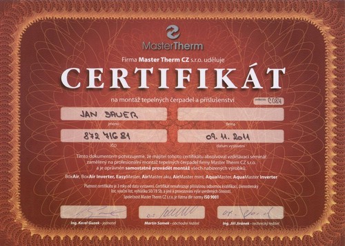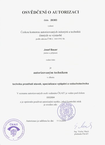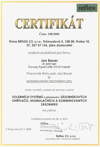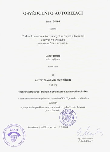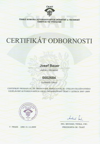 Certifikace firmy - SOLTEP - Jan Bauer - projekční kancelář